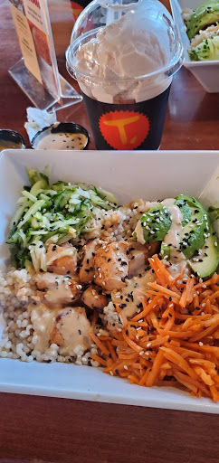 The food leaves me feeling happily full and never makes me feel gross, bloated, or heavy. I enjoy the chicken wraps with seasoned white rice, herb tortilla, and teriyaki sauce. My wife likes the salmon bowls with half greens and quinoa with the wasabi sauce and extra avocado. Drinks are heavenly, especially a chocolate chai in the summer!