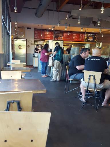 The food is great, but the portions seem to be different each time here and sometimes I feel like they are about to pull out a scale to make sure they dont give you too much meat. I like to take my time when I order, but it is hard because they are assembly lining you with a crowd of people behind you burning a hole in your back because your taking too long. If you dont mind the loud traffic, they have outside seating, but you may get hit up by the homeless that are hovering over you.
