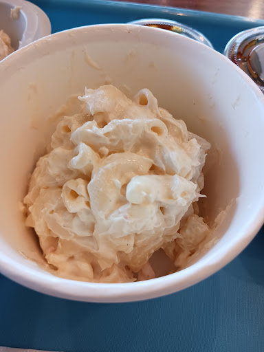 I have no idea what they put in their Hawaiian macaroni salad but that stuff is like crack!If you I cant get enough of it! I love to put the teriyaki sauce on the top of it...but thats just me Im a sauce freak. Personally Id recommend getting the mixed chicken plate. Half terri & half (Katsu) or breaded chicken. This location is clean and they keep the condiment bar well stocked. Also if you are a sauce freak like me you will love the self serve sauce bar! They even have plastic containers so if you get carry out you can make sure you have enough sauce for your meal!