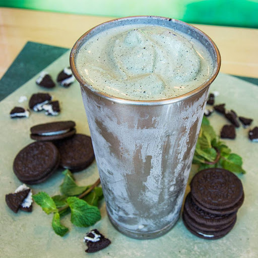 Fantastic service, great food. Burgers are a bit pricey for what they are (taste and buns similar to smash burger), but the fresh homemade chips makes up for it! Great alternative option to fries. You can create your own burger. Shake was okay IMO, nothing super special - I got junior Chocolate Oreo. Lovely little outside patio with shade. Too bad they dont serve beer! :)