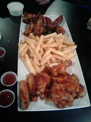 The atmosphere is really. I wasnt crazy about their chicken wings. The sauces were just okay. The chicken wings had no seasoning; prior to the sauces being slathered on. Cant tell you about the rest of the menu. I only ordered the ten piece wings. The Asian sauce was good. I also got honey barbecue. Didnt care for the barbecue sauce. Customer service was great. Very friendly staff, The Womens bathroom was very clean.