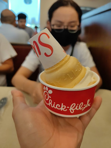 I love getting their Chick-fil-A bites and dipping them in the Chick-fil-A sauce. Their waffle fries are a really good side too.