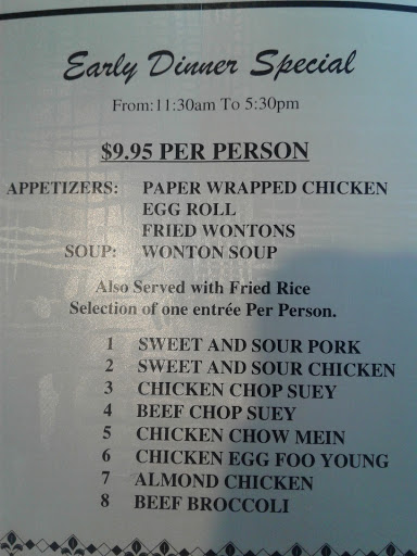 Great Chinese food, family owned. We have been coming here for the past 15 years and have never been disappointed.