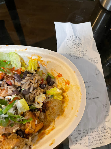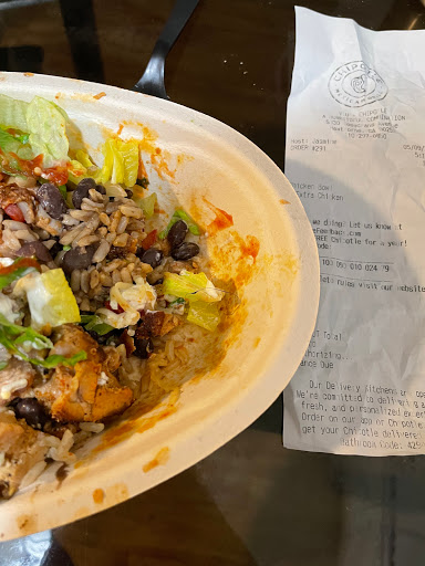 My experience did not go well. I was asked my order. 2 chicken bowls please. White rice she gave me brown. When I corrected her she threw the brown rice out the bowl then put white rice after she took her finger digging in my bowl (though she had on gloves) I told her about digging in my bowl with her fingers she then threw the rice she had in the bowl away. Then moving down the line after putting my chicken in the bowl I told the next young lady I wanted everything except gaucamole. What I get everything plus gaucamole..