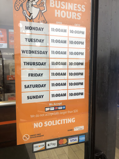 I went in last night to order pizza and the owner would not let me order what I needed with out trying to push me to order extra food my order was pretty simple he messes up n over charged me n than we asked for our third pizza n he didnt charge for that.... mean while screaming at his poor employee. ..in front of all customers. I payed for my food n walked out than I realized he did not give me my receipt so I went back in n he told me he does not have it n yelling at me n trying to shut me up than told me here is 5$ ummm I just want my recipt... he started looking in his pockets ...y would my credit card receipt be there any way he got in my face n I went off. He is horrible to his employees and customers. . I called corporate to complain n they said they couldnt do anything. .. it was so bad that a guy customer got in between the owner n I n all the customers were telling the owner off! So Done with this bone head...