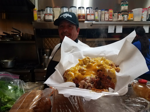 I got the pastrami melt and my boyfriend ordered the tritip sandwich. The cook was very lively and we sat at the bar watching him make our food. Both were decent tasting, the beer battered fries are better than the normal ones. The place is a small hole in the wall and older looking, definitely a locals spot to go as it seemed like they knew everyone who walked in. It was exactly what we thought itd be.