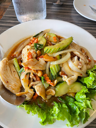 When I want fine-like dining with Thai Food this is the place I go. Ive tried the Pad-see-ew and curries and theyre all pretty good. You can easily substitute tofu or mock chicken to dishes and theyll taste the same as others. Food is not greasy and it can be adjusted to desired spice level. Servers are friendly and food came out in a fast manner. The Thai Ice tea is pretty good there. Dishes run around $10 per plate.
