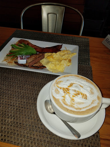 I had the salmon flatbread. Im not usually big on that kind of thing but it was really good. They have a lot of healthy options and the coffee is not bad. Overall, I love the people who work there and its very atmospheric. Really nice place! Highly recommend you come and eat dinner here and try their drinks too. (: