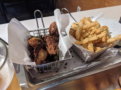tasty. ..fish tacos kinda small.......too many Cajun fries..crispy broussel sprouts a little burnt & not drained well..greasy..... Cajun sauce tasted more like garlic & ketchup .....