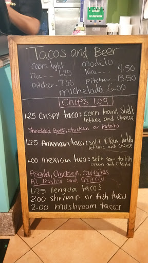 Delicious tacos, regularly quick service and beers! The decor inside gives this place character and an authentic atmosphere. I usually just pickup my orders, especially on taco Tuesdays, its a college madhouse!