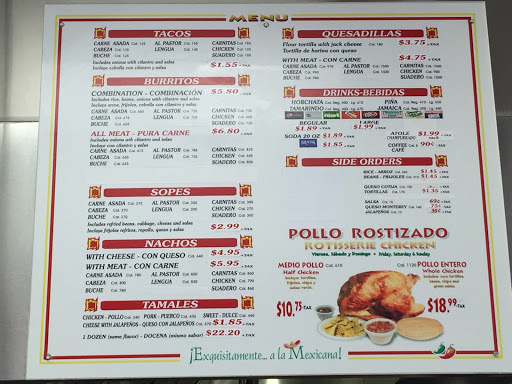 Sopes: excellent. Tacos: also great, some more than others (al pastor is excellent). Tamales: pretty good, huge for the price, though Ive had better tamales (but where else can you get pineapple tamales?). Horchata: giant, and also great. Service: fast, I guess, but a bit confusing. The loud music that started playing through some speaker somewhere about halfway through our meal: loud. I think Id recommend this place for takeout a bit more than Id recommend it as a place to sit down and eat. (Though I did just learn this time that they have a bunch of tables outside, too.) You can stuff yourself for like 8 bucks, so theres that.