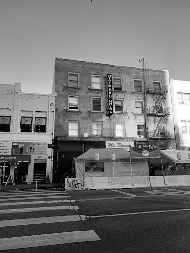 This place is excellent! There is a large selection of ramen, cold ramen, and even a vegetarian menu. First off, if you walk right by it, youd never really notice it. Most people dont because theyre headed to Daikokuya. Let me just tell you, I personally think Daikokuya is a bit overrated, and the time you have to wait is absurd! Not so at Mr. Ramen, it is often at a low busy level, and there is definitely ample seating, maybe a dozen or so small tables on one side and 3 or 4 large tables on the other. When you walk in, youre greeted and offered a seat (either wherever you like, or taken to an open table, depends on traffic.) Once youve been seated, take a look at your menu and order! The food sometimes takes a while to get out to you, but it is certainly worth the wait, which is never more than 15 minutes. They recently got a new system that lets them ring you up right at your table, which I think is really cool! One of the walls is covered in drawings people have done, as well as a couple menu items. The staff are very kind and will accommodate you in whatever way they can if you have a food allergy or special request. My personal favorite is the chicken bamboo ramen on cold days, and any of the cold ramen items on a hot day. Summer for them is a relatively slow season, but business picks up A LOT in winter, so be prepared to wait a little longer in the colder months.