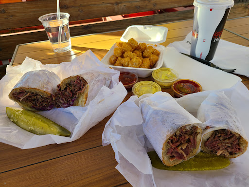Our first visit, my hubby had the outstanding pastrami and I had a pretty good pulled pork sandwich and shared OK chili fries. A very busy place, yet service was good with great staff. Our second visit, again staff and service was great. My husband loved his pastrami sandwich last visit so this time he opted for the Reubin. I ordered the grilled chicken with avocado and bacon. Somewhat disappointed in our sandwiches. They were both supposed to be grilled and yet there was only the slightest indication either had barely kissed the griddle. So greasy soft bread was our reward. Also my bacon wasnt crisp. Limp and chewy. Very disappointed in our second visit. My recommendation is to stick with the very excellent house-made pastrami and pulled pork. Avoid any grilled sandwiches and bacon. I bet the hamburgers are good too but as we live 35 miles away, I doubt we will make the effort to return.