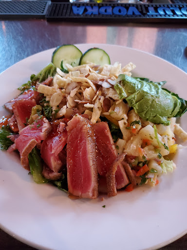 This place seems like it would be good but its terrible. The prices are very high for the type of food but we stayed and ordered. The pictures in the menu do a good job of convincing you that the price is ok. Maybe it wouldve been if you got what you saw. They brought me a lifeless bed of lettuce missing half the elements pictured. When I asked the server about it she blamed it on the lighting. Ok..... wont be back here. Youre better off at BJs! Oh why do they have Drakes coasters but dont carry their beer!? In a word awful. Dont go here!