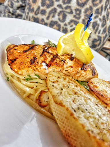 I received a gift card from my boss at Christmas but its been difficult for my husband and I to go so, tonight we.decided to try it take out style. I ordered a philly cheese steak and got chicken instead, i dont care for chicken. My grandson ordered spaghetti which was good and plenty to share with me and with the French fries we both were full. My son ordered a steak which he said was good but very small for 22 bucks. My husband ordered fish and chips he said it was OK but he was late getting.home so it wasnt hot but to be fair he was late. I dont know if I would god back, when I picked up our ordered it was Monday and not busy at all.