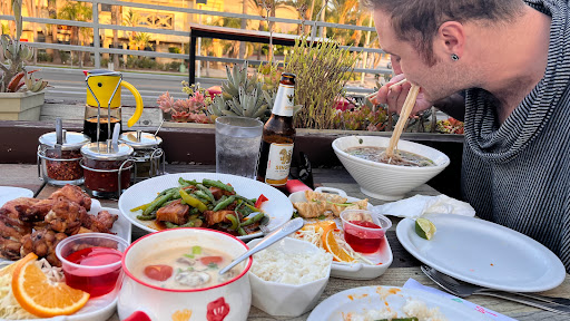 Good Thai food, try their green curry and delicious mango-sticky rice dessert. Sit outside on the patio ;)