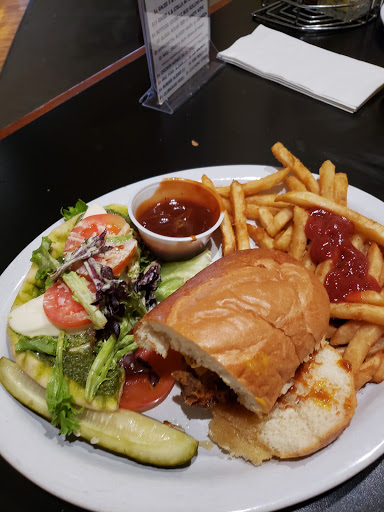 Comfortable and cool. Nice atmosphere for a strip mall pub. We sat at the bar. We were served quickly. Had a drink and lunch. It wasnt very busy, and it looked as though they were well staffed.... That said, I didnt get my fries until I was half way done with my sandwich. And I still had to ask for them. Ketchup wasnt brought with my fries. Wasnt asked if I wanted another drink, wasnt checked up on. Server(bartender) was very distracted with the til and her phone. She was friendly and nice though. Im writing this because I generally tip 20% and today I tipped 9% .
