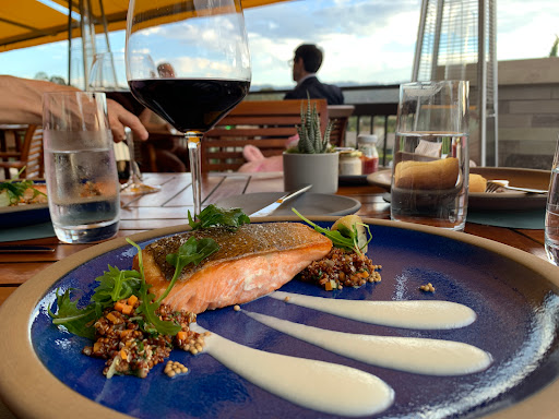 Ah Madera, this place reminds me of sunsets, puppy dogs, motherhood and apple pie. The first time I ate at Madera, it was a lazy Saturday evening in the fall. We arrived early and strolled into the bar to wait for our friends. To my surprise, there was a beautiful outdoor patio facing west. While waiting for our server, it gave us the opportunity to soak in the view and relax to the damped sounded of the outside world. It was a good 10 minutes or so before someone acknowledged our existence, but we didnt mind. Once our friends arrived, we went into the dinning room. It reminds me of modernized lodge, large fireplace, barn style ceilings, with white table cloth. The food was average, but the views were exceptional. The wine list is very good and has a few of my favorites. I appreciate the Madera like a outdoor get away, one that possess a formal yet quaint charm, the feeling of being away, and a cozy atmosphere despite the sea of suits. Id recommend anyone to give this place a try, sometime near sunset, when there are few suits around. Youll feel relaxed and refreshed at the end of the night.