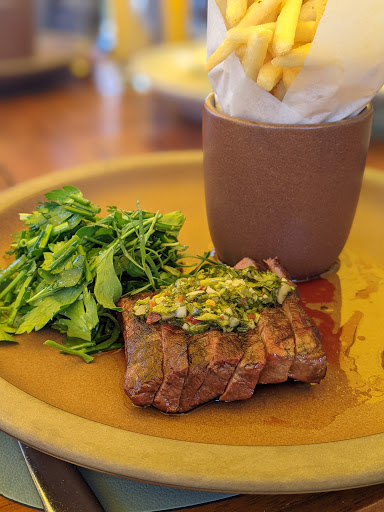 Brunch at Madera: We tried the eggs benedict with smoked salmon ($18) and the lump crab meat frittata ($21), along with a champagne mojito ($13). We asked for bread, which was a delicious, soft focaccia served with butter. The eggs benedict dish was overall excellent, but the eggs were poached a bit more than they should have been. The frittata was a disappointment, the crab meat was not very discernible and the dish just wasnt tasty, except for the tomato marmalade that came with it. The mojito was perfect. On this visit the wait staff could have been better; we had empty water and coffee ($5) cups for too long, and the restaurant wasnt full. Madera Lounge: Complimentary bar snacks (olives, nuts, popcorn) are better than average, a nice touch. Good views, when its not so much of a scene you cant see it. Excellent Asian pear vodka cocktail. The burger is fine, while the accompanying fries were really good. On a separate visit, the fries ordered alone were a tad too crisp. The tuna tartare is a generous portion (though inexplicably few wonton chips come with it) and worth ordering.