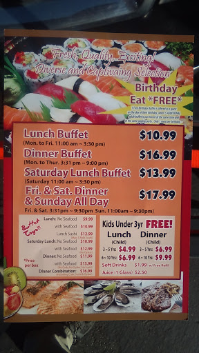 we went there when they open .. and the food was decent for the price...after 2months... they suckk... i dont know how to put it but food was cold.. there isnt any shushi on the dish and the chicken, crab and shrimp tasted like they are from yesterday food. Regretfully, such a waste of my money i can only eat some of the desert fruit then walk out for the lasttt time. hope this help anyone saving time and money.