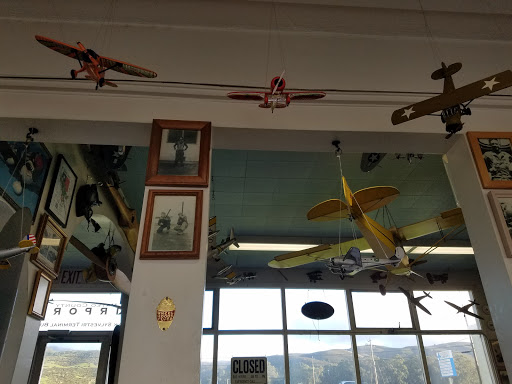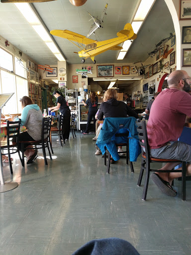 You walk into a cozy diner-like room. Sunlight pours in from the windows that offer a view of a small runway and a few 2-person planes. A distant Frank Sinatra type voice fills the air with a relaxing embiance. You wait for your meal while feasting your eyes on a fantastic display of model planes, black and white photos, and various other airplane paraphenalia. Your heart begins to fill with nostalgia of the "good old days". But then youre suddenly taken from your daydream when a kind waitress slides a giant plate of delicious food on your table.