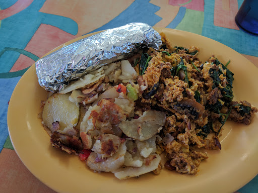Love this place… Excellent omelettes, pancakes, waffles, and everything else… Coffee okay… Outdoor patio dog friendly and you can watch the planes take off and land pretty cool… Good service Update: coffee is improving, the steak and eggs is superb! Blueberry waffle loaded with blueberries!