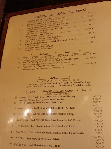 We sat down , had to get our own menus . Other people came in were seated and orders taken before ours . Vermicelli noodles were too starchy . It was hot and muggy . Prices were comparable to other pho restaurants . Ok food , shite for service