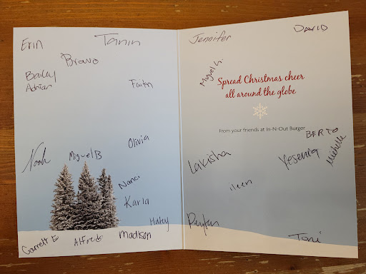 In-n-Out is our familys all-time favorite. We go there at least once a week. When coming back from Newport yesterday, we stopped at this In-N-Out in Norco. We had our usual yummy burgers and fries but were pleasantly surprised by the amazing customer service one of the employees provided. We were sitting outside and an employee named Angelina (sp?) came and asked if she could bring our food to us when our number was called. What? Weve never experienced this! Then she went to the next table and asked the couple "Can I bring out some water for your dog, he must be really hot?" What? She went around serving people and always with a smile. There should truly be more people like this in the world, we have no doubt that this young lady will go far in life with that kind of work ethic!! Good job Angeline!!