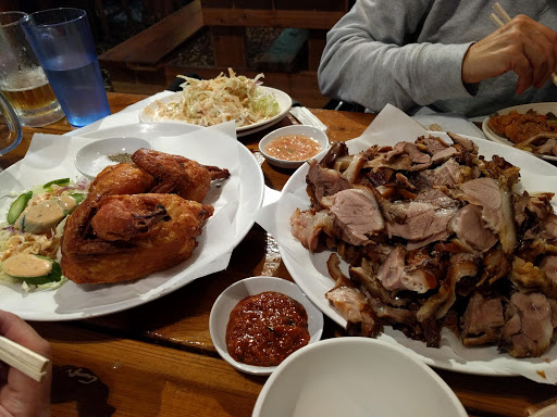 Coming to this place was such a yummy treat throughout college! They used to only be open for dinner and late-night eats, but have since adjusted their hours to include lunch and the in-betweens. :) I always ask for a half-and-half order of Garlic Soy and Sweet & Sour chicken. Their chicken goes real well with a side of rice (which would have to be ordered additionally), though I know many people just down the chicken on its own. Cheese corn, yogurt soju, and tteokbokki are other popular orders. Nowadays, I tend to call in (20 min. before!) and just grab chicken to-go. Theyre considerate to include a sizable plastic heat-sealed container of their pickled radish and another of their salad appetizers in to-go bags. Bringing food home is nice because you can make & eat your own rice in quiet comfort, haha. However, their restaurant is a popular little spot to hang out with friends for dinner and after, too. They have their own parking lot, but you can also find parking on the streets if theres no vacancies. Expect a bit of a wait getting a table on most evenings if dining in-house (although theres sometimes surprising availability nowadays). UPDATE: I found their chicken noticeably less flavorful the last time I ordered my usual. Not sure if its a one-time fluke, but there was a lot more bland white meat on my chicken rather than the usual packed-to-bursting-in-flavor wings expected. The sauce flavor was right, but the choice of meat and saturation of flavors therein was definitely off.