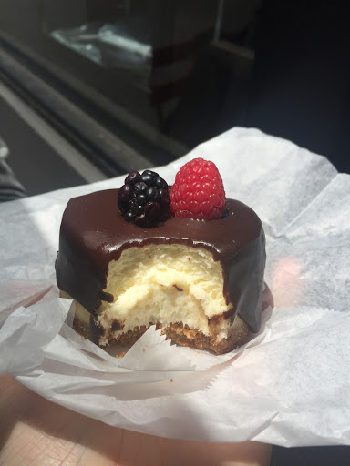 My friend was retiring and I needed to get a cake. I came by this place to give it taste before ordering. So first time around I got a mini flour-less chocolate cake. It was pretty darn good. So after sharing that cake and getting the ok from some co-workers, I decided to go with the Chocolate Fortress. Even the name itself was something to be reckoned with. Chocolate cake, with chocolate mousse and raspberry filling topped with fresh raspberry and chocolate shards. Yes, I died and went to heaven. This cake is extremely rich and very heavy. I couldnt figure what message I wanted when I went in to order. They allowed me to call the day before pick up. This was so painless to order a cake. Now this will be my go to place in Oakland for special occasion cakes.