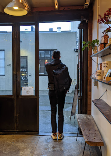 Nice outdoor seating, good coffee if youre into the whole Bay Area Third Wave scene. Me, I miss the days of a good solid cup of dark roast. I dont want to treat a cup of coffee like its a fine wine, for Petes sake.