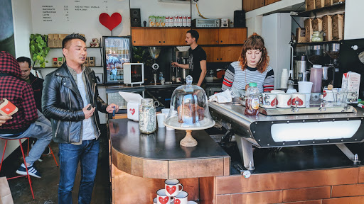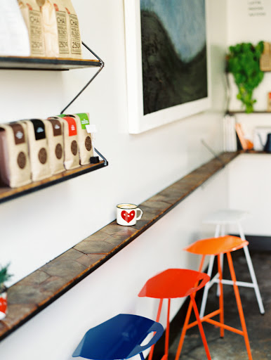 Cool decor, sightglass coffee, intimate setting, futuristic espresso machine