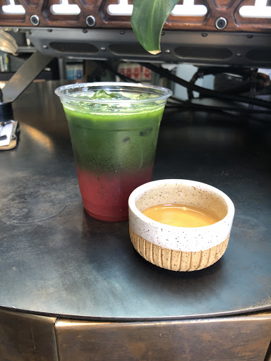 Coffee is always on point. Their baristas are very nice and very talented. The space is modern, clean, well lit, good flow. Seltzer water on tap is a unique feature!