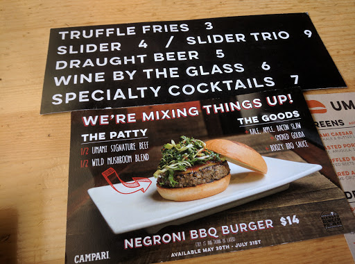 Went Friday at the beginning of happy hour. The ambiance of the restaurant is excellent, along with polite and friendly service. Everythings excellent so far, and so now to the food. I had the umami burger as well as some cheesy truffle fries. The burger was decent, the bun was perfect though it didnt quite meat my expectations. The fries were acceptable, but once again did not meet my expectations, more so than the burger. The fries were saturated in cheese at the top with the rest of them having none at all, and the truffle flavor did not come through at all. Overall, good service, awesome restaurant ambiance (with a pretty sick patio space), and lackluster food. I would go back, but for the experience provided at the cost that it was, I wont be a very frequent customer.