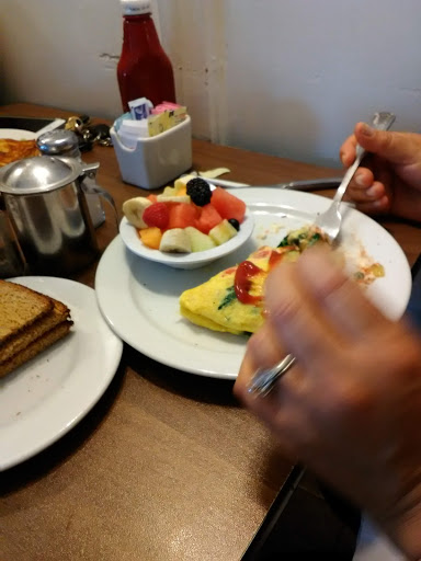 There are many things to love about this place! First of all, the staff is kind and accommodating so your experience is pleasant from the get go. Then theres good food to match! The portions are sizeable for a pretty hungry person and enough for a second meal for those of us who have eyes bigger than our stomachs. If you have a sweet tooth, then you should try the creme brulee french toast. Ive never encountered this elsewhere and it is delicious. If you want to get your protein fix, you cant go wrong with their omelettes because they are as delicious as they are big. If neither of these sound good, then dont fret! They have a sizeable variety, but make sure you look at both chalkboards for their specials. It is a locals hot spot and those are always the best to try, so go in...you wont regret it! Just be prepared for a possible wait because it is popular :)