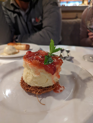 This restaurant had great reviews and we had a business lunch here with a client since one of my teammates was friends with someone who worked at the restaurant. I had heard so much about how wonderful the food was, so I was really excited to give this place a try. Overall, I was a little underwhelmed by my experience. I ordered one of the fish specials for the day that the waitress recommended. She made a big fuss over how they carefully debone the fish before serving which I found odd, but it just made the fact that the fish had bones (and plenty of them) when I attempted to eat it. It was pretty off putting since I wasnt expecting them. The best part of the meal was the surprise dessert at the end with pistachio ice cream and a little pastry. That was absolutely phenomenal. I would definitely come back for dessert.