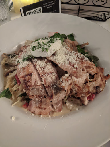 Romantic interior, good bar. I had the rib eye, it was a little on the rubbery side unfortunately. My dinner-mates all enjoyed their selections—all some variety of pasta dish. Staff was ultra friendly and attentive. A great place to bring friends, family, and a special someone or two.