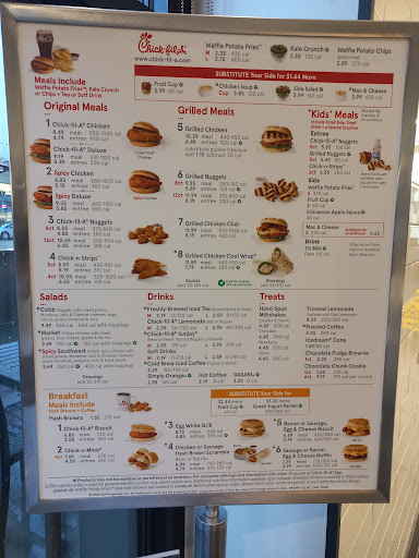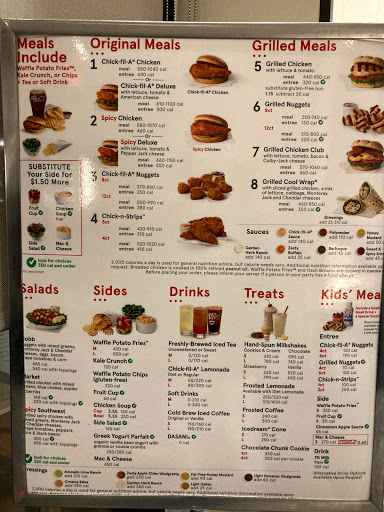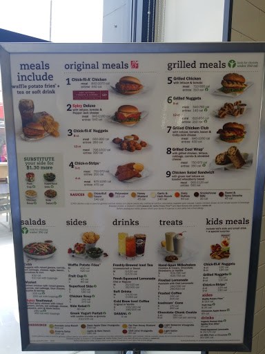 This is the typical Chick-fil-A except for the fact that it in decorated a different way. Decor here would be somewhat metallic and flashy looking. Also they have the largest outdoor seating area I have seen on a Chick-fil-A. I put in an order and they competently filled it thank you.