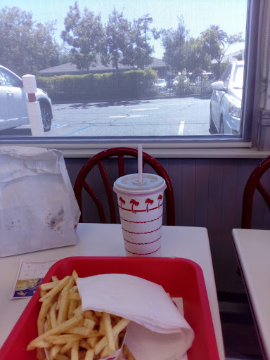 If you enjoy In-N-Out then youll enjoy this spot like any other. Its always busy including the drive-thru as expected. Parking lot is shared with some office space and its a bit of a squeeze to get into the lot. Inside theres plenty of seating with outdoor seating available also. Its alright.