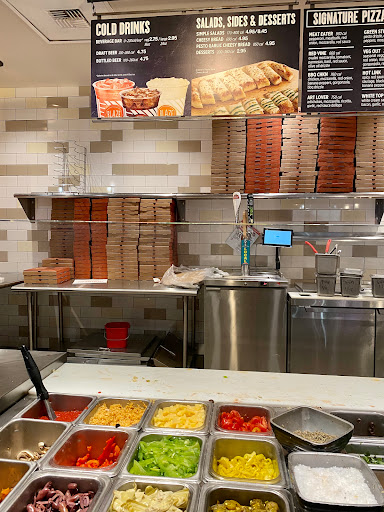 It is like Pieology but they have good cookies. Its spacious and the pizza comes out good although I would like a bigger selection for sauces.