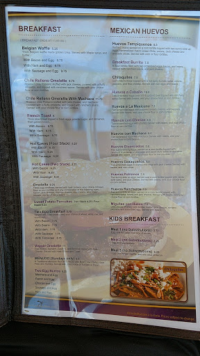 Large menu a lot of food all of it very tasty great service a place to go anytime you want some good food and a friendly atmosphere