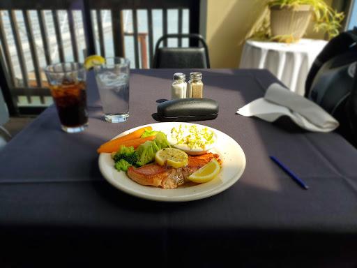 My wife and I stopped by here while checking out a local event at the Marina on a Saturday. It was close to noon. We were greeted immediately upon entering and seated in a booth after giving the option of a booth or a table. The entire eastern wall of the restaurant faces the river with large windows which provided a fantastic view. A waitress came by shortly with menus and an offer of something to drink. We settled on coffee and noticed that breakfast was still being served (until 1:00 pm). Finally decided to go with the lunch fare. I had a chicken club sandwich with sidewinder fries and my wife had a pesto chicken salad. Our food was promptly brought out with very little wait. We ended up talking with our waitress and although I cannot remember her name, she had been working there since the eighties which says a lot about the restaurants stability. Although we learned that it had passed on from owner to owner over the years, our waitress indicated that the current owner was a fantastic boss. Overall, the food was very good , the environment was good and I would most certainly recommend this place for a nice meal. Not upscale by any means, but just plain comfortable.