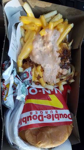Everything is perfect the food fresh good service but the only two things they dont have the first one is the inside eating only outside and that sucks the second thing the drive-through its ok big enough but the only thing not safe when the people cutting between the drive through is hard to see the Little kids if we drive the truck .... They have to open another line. For the people wanna eat outside !!! And For people to order their food safety and the drivers be safe also ! If in in out care about safety and other people they have to do something I dont see any safety I well gave theme only 4stars