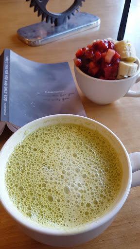 I stopped by here to meet a friend. The atmosphere is pretty calm and the place had a quiet noise of people typing on their laptops or chit-chatting with their friends. I had a cup of tea and sat on the patio. It was dusk but there werent that many people out there. The service wasnt that bad, but there was nothing that struck me as to why I should come back. Plus after dark the local homeless population comes out and while no one bothered me directly, I was definitely looking over my shoulder.