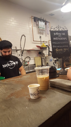 This is a nifty spot to chill alone or with friends. The coffee is delicious and the ambiance is nothing short of cool. There is plenty of seating and electrical outlets! My one biggest gripe is the state of the bathroom (sketchy and in need of repairs!). Molinos shares a bathroom with their attached thrift shop neighbor, and the bathroom has seen waaaaaaaaaaaay better days. If youre ever in the heart of Downtown Riverside, give this place a visit. Order a coffee, sit down, relax, and enjoy the view of the Mission Inn.