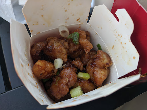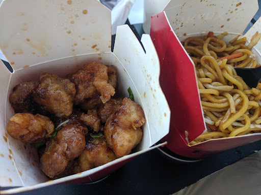 Ok, I give up. I was so hoping that things would be better when the Riverside Plaza location got remodeled, but theyve had their last chance. My husband was in today and placed a to go order for the two of us. Mongolian beef for him, and Bourbon chicken with vegetables for me. Just a few hours after he ate his beef, he was doing the Porcelain Two-Step. I had saved mine to warm up for dinner (dont even TRY warming these up. Who makes Chinese food that you cant warm up?!?!?). My entree, which Ive eaten before, had such a dry unpleasant taste that I wonder if I will be his dance partner later. I swore before the remodel that Id given them their last chance to make tasty food, but now its back to Mr. China Express for me.