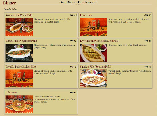 When I read the name i expected a high quality of Turkish cuisine. But it was not . For the rice it was an uncle Bens cooked the American way.the dip for the chicken was ranch.i do not mind to pay 2 dollars more and get more 2 teaspoons of egg plant salad.i do not think I will come again.the food was samples. Although the place was clean and dry well designed. The kunafah although it is not Turkish was good.