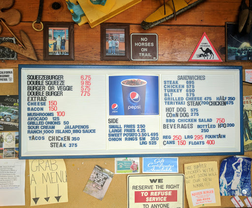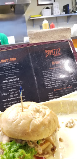 After a visit to Vacaville Outlets, we figured why not drive a little further to The Squeeze Inn to try the much talked about Cheese-Skirted Burger! 1) In line 5:15pm 2) 5:35pm Made it to Order Counter; female walks away without acknowledging or announcing she would return. While waiting/wondering if I want to pursue this or the Japanese place a few doors down, took a look around. Dining Area/Kitchen floors a mess; ditto back porch. Restroom a mess. With all these people fighting for seating (you are directed to order and someone will seat you—it caused more anxiety/animosity amongst the customers I thought), BUT I decided to go through with this 3) 6:05pm (50 mins. after arrival) FINALLY, order slip is pulled down by Cook to prepare 4) 3 orders behind us, and after ours was taken off the grill (did our order get forgotten on the side?), are announced for pickup! Our order was not special--very simple. Now was the time to scream! 5) At long last, 6:15pm, after nudging the Grill Team, we get our order. Fries gone cold. Cheese Skirt Crunchy and YUMMY as we heard but, burger patty not home-made; more like the kind you find pre-frozen at the Grocery Store. Soda machine lost its carbonation--who can enjoy a burger and cold fries without some fizz! Wow...all that time waiting and the gas we used to get up there. Spent $50.00 for 4 people! What a disappointment. The service left a bad taste in our mouths. How did they pass inspection (cleanliness) and receive all those great reviews? Did we go on a bad day? Maybe you’ll have a better experience than we did.