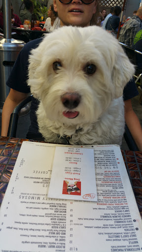 At around 2 in the afternoon on Saturday the restaurant wasnt too busy and we ordered lunch from their brunch menu. The Salade Maison with salmon was an exquisite medley of greens, berries, nuts and vegetables. The salmon was perfectly cooked with a lovely crunchy skin. We also ordered some truffle parmesan fries and they were excellent and the cheese flavor was subtle with an interesting, somehow hazelnutty flavor. My steak and eggs was just as good. The medium rare beef was exactly that and as tender and juicy as a $60 steak. Eggs were cooked to perfection and the tarragon sauce was a delightful twist. Definitely looking forward to coming back for the dinner menu (see picture) and some dessert. Will probably dine inside next time as the hundreds of flies were not exactly enhancing the experience and are the only reason why its not getting 5 stars.