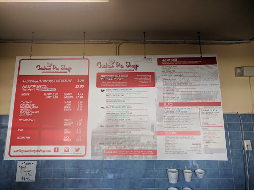 Ahh The inFamous...The One & Only, The San Diego *Chicken Pie Shop* I came here for the first time, 29yrs. Ago..haha sounds like something my mothers stories begin Like, But if it were her story, it WOULD begin as follows: The 1st. Time your father took me here was 52 years ago when I was pregnant with you Mary Anne, my Fifth child, and last I might add. Good ole Mom and her wonderful working, haha lol. We had 4 children to feed, she would say: and this place was our heaven, to take your 2 bothers and 2 sisters, you on the Way, To the chicken Pie shop, because the Pie Dinner back then was only 65¢ and your fathers Steak Dinner was only 85¢, and we had 2days worth of leftovers to boot! The only thing that has changed is the Price, but it is at fair market value, there isnt a place I can THINK of, where you can get A chicken Pie, mashed potatoes and gravy, assorted Vegetables, Cole slaw, a fresh baked warm roll, with real butter,, a hot coffee/soda and a slice of fresh made peach pie. All included for just $8.49 add soup/salad for ,99¢ If you havent been able to get there, I suggest you do, dont say I never told you where to get the most for your $ in San Diego, because I Did! The Chicken Pie Shop, San Diego